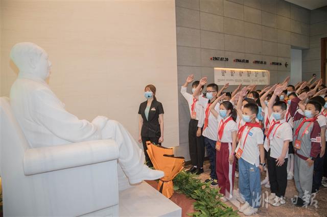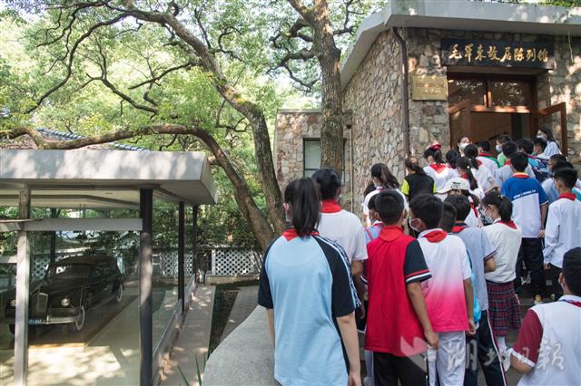 图为少代会代表参观东湖宾馆毛泽东同志故居。