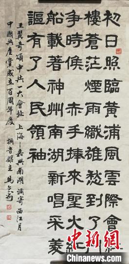 这幅《西江月——王翼奇颂一大会址》书法作品出自中国书法家协会会员、西泠印社社员、浙江省文史研究馆馆员马亦钊之手。他表示,中国共产党党员从最初的50多人发展至如今的9000多万人,在新中国建设中发挥了极其重要的作用。