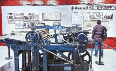 得知记者来自武汉,赵露特意介绍,这台印刷机与武汉有着密切联系!《新华日报》创刊前,社长潘梓年在武汉购得这台印刷机。1938年10月,这台印刷机从武汉迁来重庆。在《新华日报》发行9年多时间里,它一直担负着《新华日报》的印刷任务。