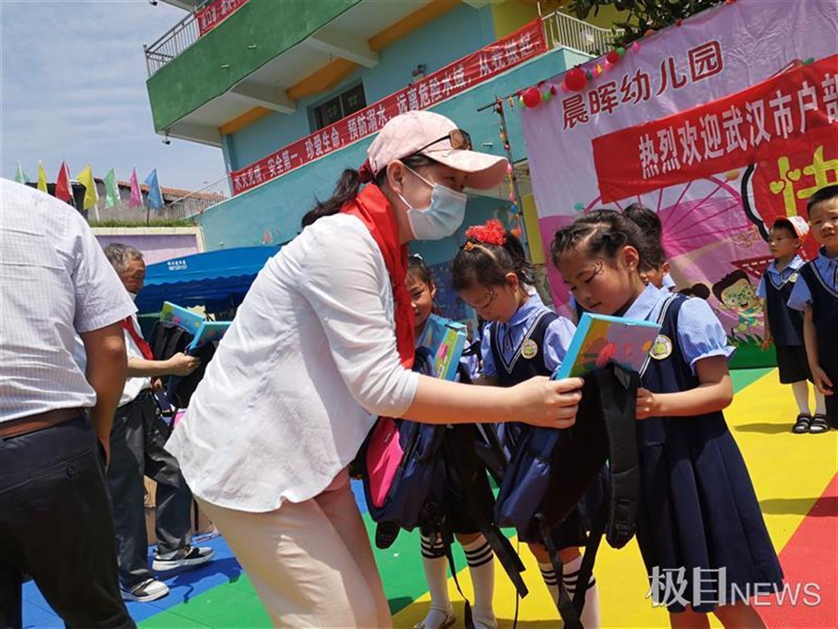 东门村是武昌区中华路街道对口帮扶村,户部巷商会采用专项捐赠和上门慰问的形式,为这里的200名儿童送上慰问品,收到崭新的书包、彩笔、文具,孩子们脸上洋溢着笑容,用充满童真的舞蹈表达对大家表达感谢。