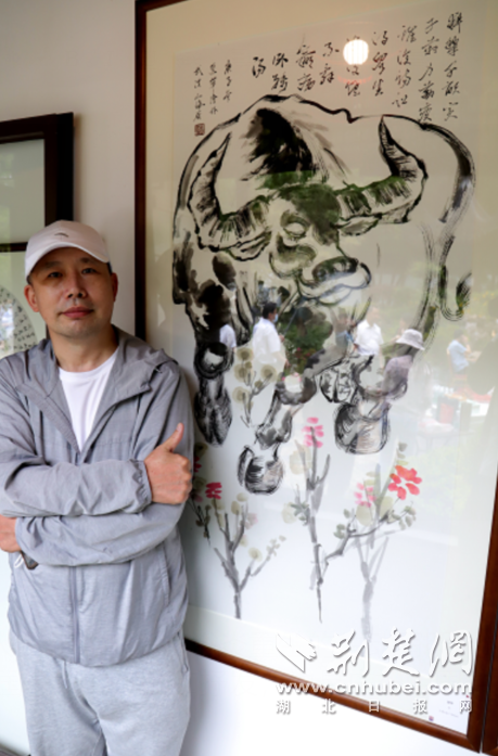 荆楚网(湖北日报网)讯(记者张扬)6月3日,主题为“发扬三牛精神 犇向美好未来”,荟萃江城40余位名家水墨精华的中国书画作品展,在武汉市解放公园时见鹿书店开展。