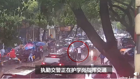 1、小学生为冒雨执勤的交警送伞 近日,安徽宣城突降暴雨,正值放学高峰,交警蜀黍在暴雨中坚守护学岗。一位小学生送来了一把伞,留下一句“警察叔叔辛苦了”。(@中国长安网)