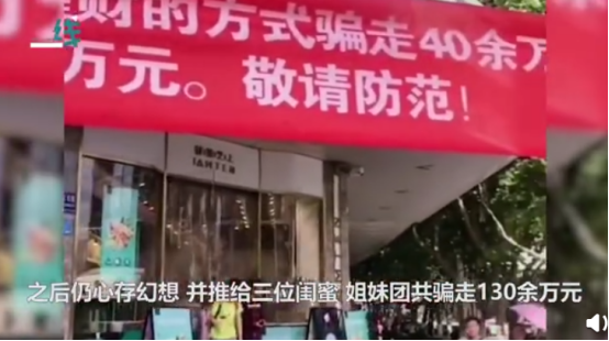 4、被骗后拉闺蜜入伙共被骗130万 近日,陕西宝鸡渭滨公安局拉了一条横幅用于提醒大众加强反诈骗意识。横幅上写道张女士被电信诈骗骗走40余万元,之后仍心存幻想并推给三位闺蜜,姐妹团共被骗走130余万元。(@中国新闻周刊)