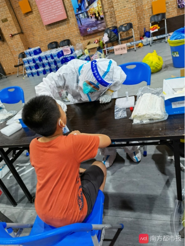 此时,在另一处采样点排队等待的4岁的弟弟表现得特别勇敢,现场有不少哭闹的小朋友,弟弟对照顾他的阿婆说:“我不哭,我不害怕,我妈妈就是做这个工作的。”当家里人把这句话转述给梁医生时,她不禁感动得湿了眼眶。