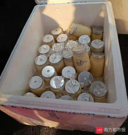 采样期间,社区的热心群众纷纷送来慰问,矿泉水、蔬菜水果沙拉、盒饭、糕点……在周边居住的一位女士还连夜亲手制作了一箱杨枝甘露送到现场,让医护们在采样工作结束后能喝上酸酸甜甜的饮料解解乏。