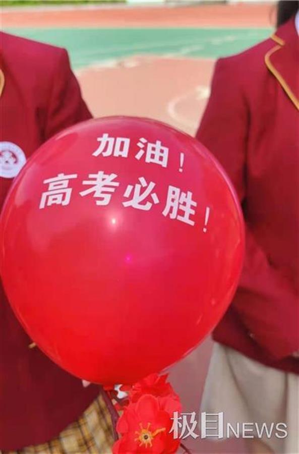 现场,全体高三同学被火红的校服、鲜艳的气球和整齐划一的呐喊声环绕着,他们在熟悉的操场上走出了决胜考场的坚毅勇敢和自信豪迈。“祝学长学姐旗开得胜,金榜题名!”“沉着冷静,发挥最好的水平!”在场师生将最真挚、殷切的祝福送给每位高三学子,祝愿他们能以积极健康的心态迎接高考。