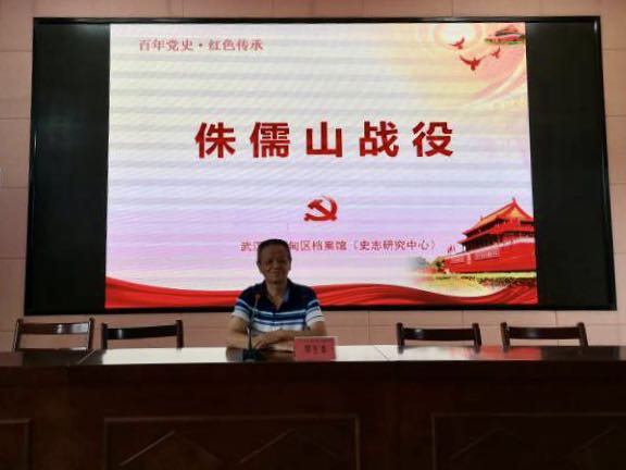 “侏儒山北踞汉水,南临长江,扼守武汉西大门,是兵家必争之地。1941年秋冬,新四军第五师挺进川汉沔地区,发起侏儒山战役。历时两个半月,大小战斗14次,是新四军第五师成立以来规模最大、影响最广、战果最辉煌的一仗。”“五老”宣讲员罗生本从侏儒山战役发生的背景、三打侏儒山、侏儒山战役的历史意义等角度,讲述了侏儒山战役革命故事,以此激励同学们奋发图强,激流勇进。