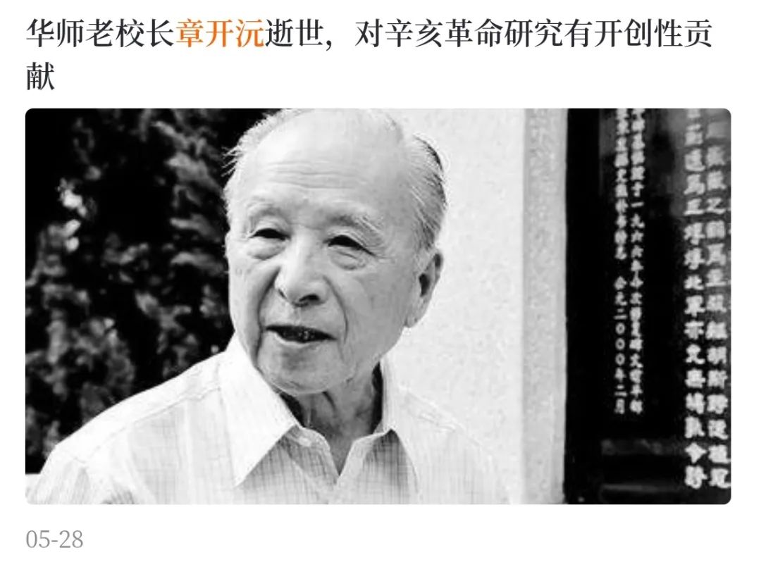 《华师老校长章开沅逝世,对辛亥革命研究有开创性贡献》