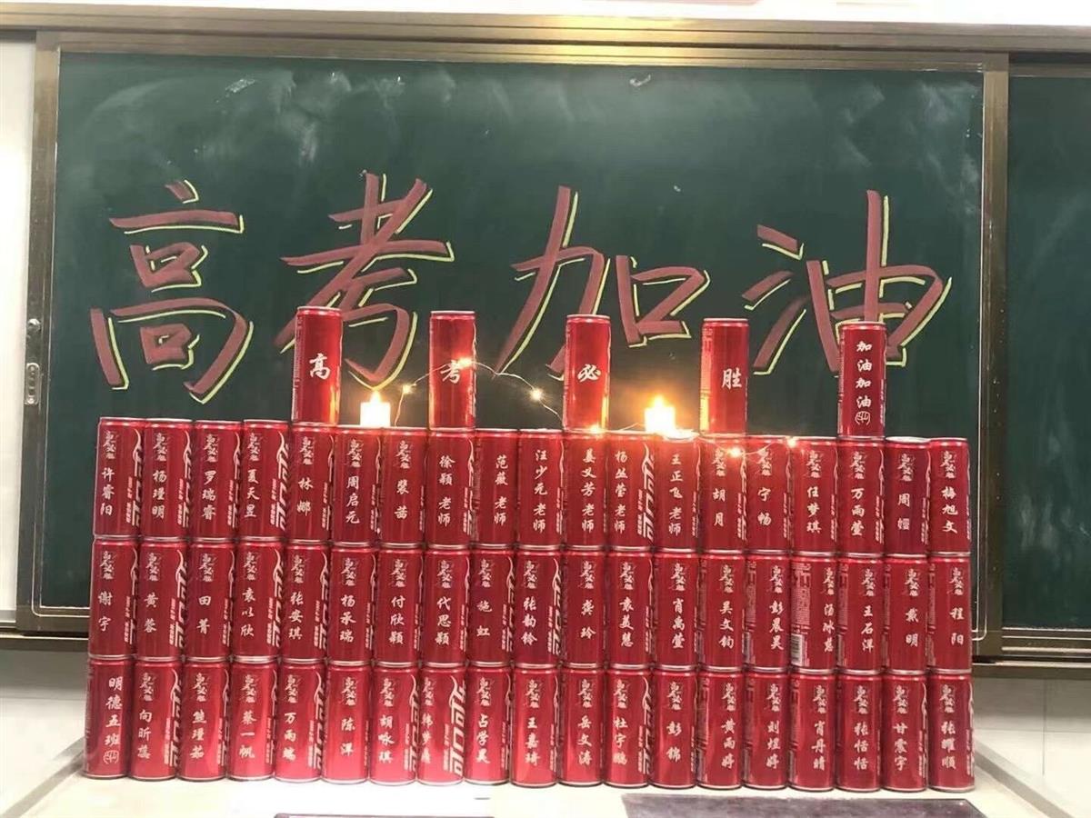 绿豆糕和粽子寓意“高中”、橙子寓意“一举成功”、可乐瓶写上祝福的话……临近高考,老师们想尽办法为考生们加油打气。6月4日,武汉市第十二中学天行一班的班主任兼年级主任余智敏为班上的51名考生送上了向日葵,寓意学生在考试中“一举夺魁”。
