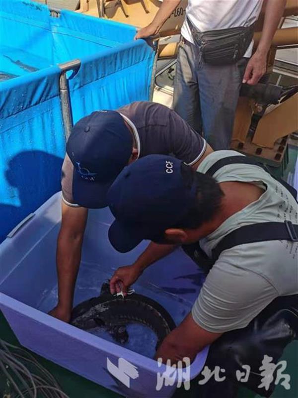 湖北日报讯(记者包东喜、通讯员李响、黎蕊)“我给这条中华鲟取个名,就叫江淮!”认养的一名爱心人士兴致勃勃地启动闸门,刚植入跟踪芯片的中华鲟,从放生通道滑入长江,转眼消失在滔滔江流中。