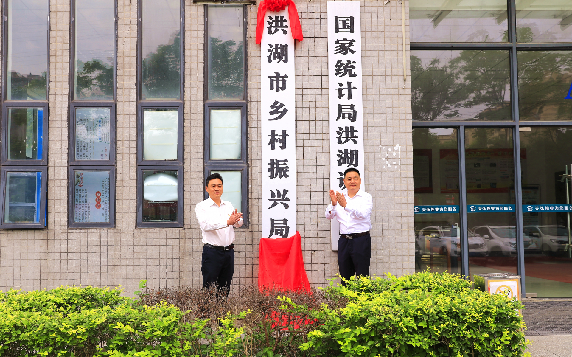 图为邵永成、周智虎为洪湖市乡村振兴局揭牌