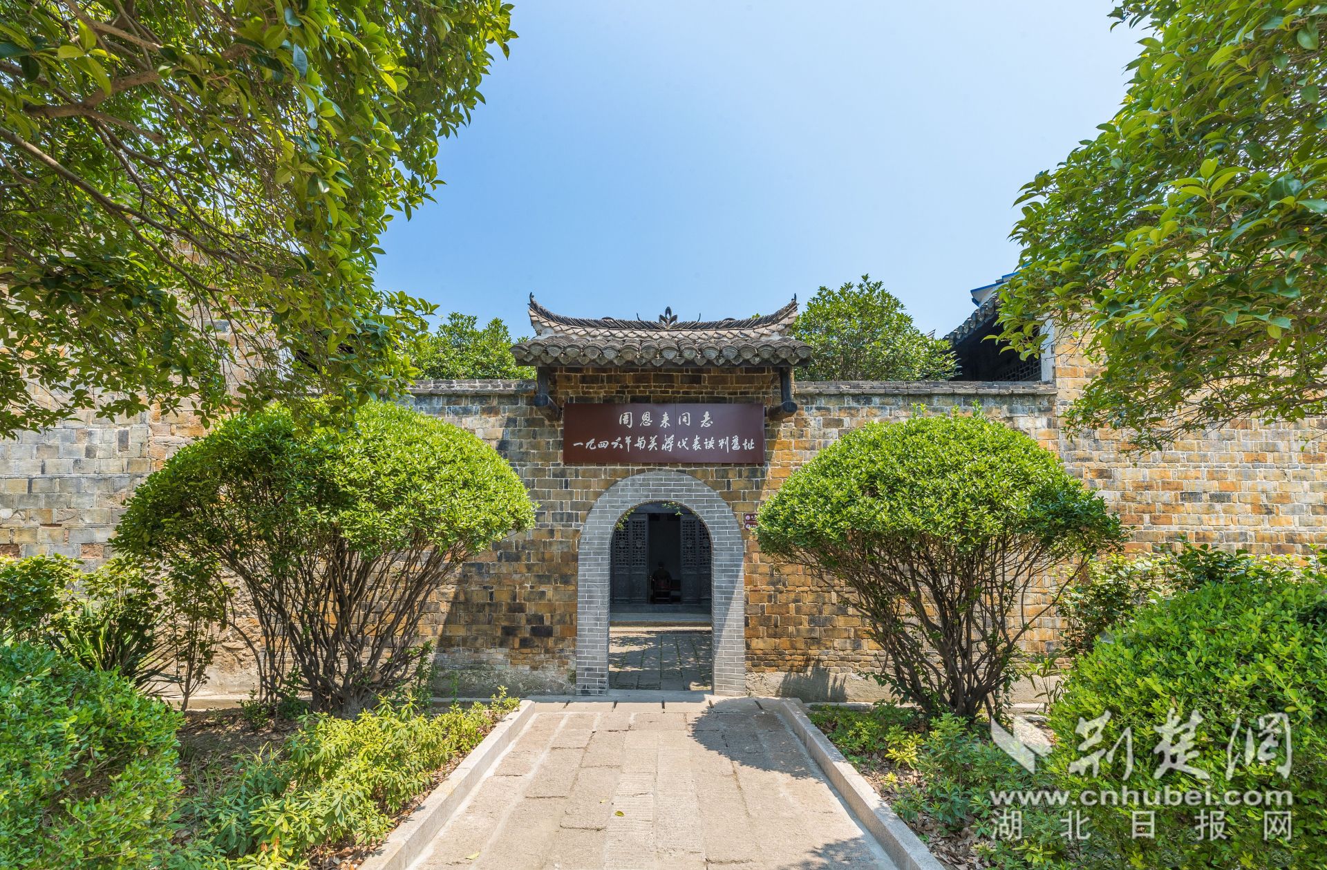 记者走进湖北会馆大门内,迎面是一条绿荫环绕的青石板路,沿路而行,仿佛沿着时光的脉络,走向充满硝烟的革命战争年代。当年发生在这里的三个故事,仍然历历在目。