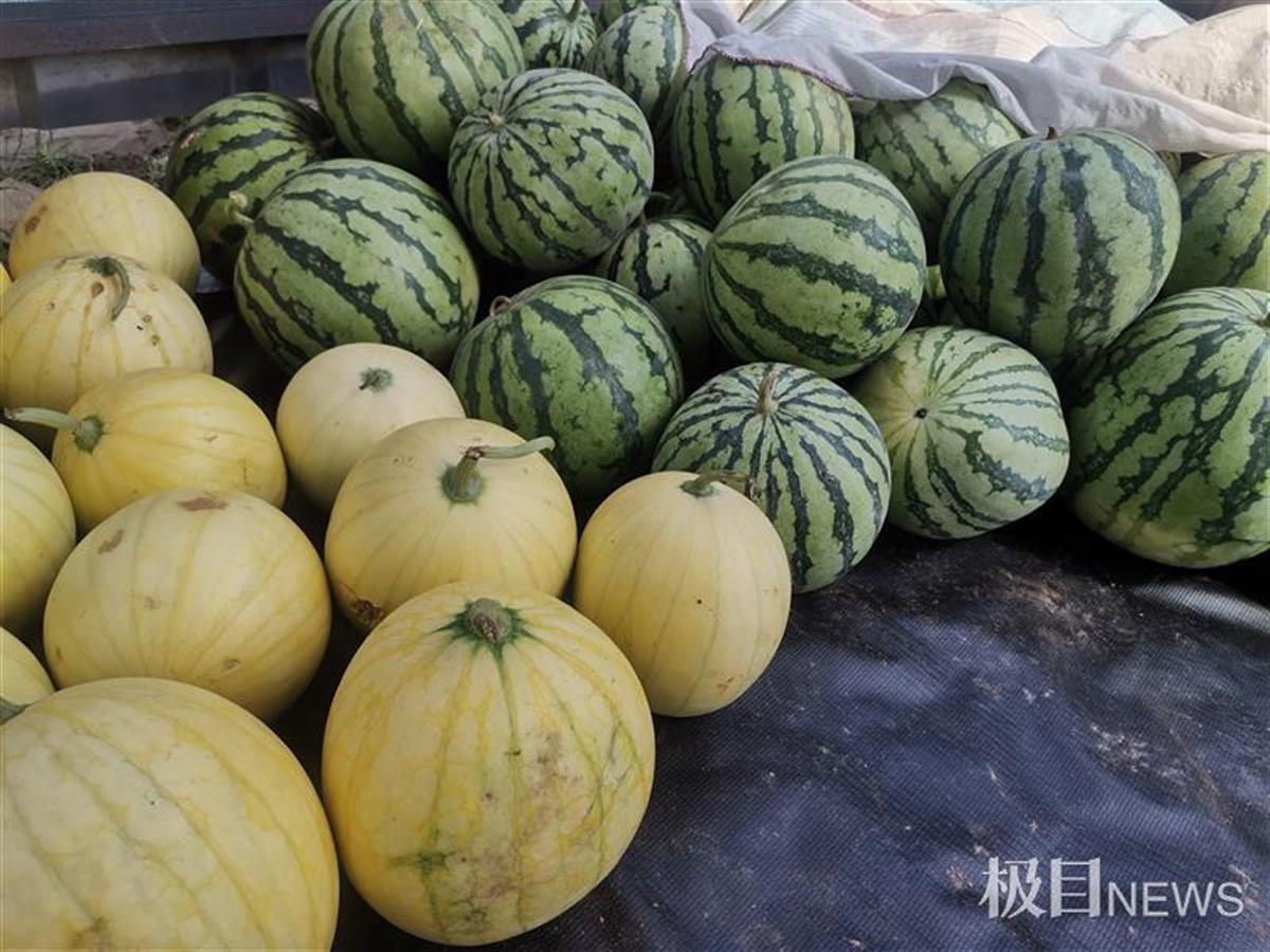 武汉市江兴洲有机蔬菜瓜果种植专业合作社负责人胡翠平介绍,很多人把这种黄皮的西瓜误认作甜瓜,其实它是武汉市农科院西甜瓜研究中心在此培育的新品种。这种皮黄瓤红的黄皮西瓜质地比较细,口感更加沙脆。走进瓜田内,极目新闻记者看到这种黄色西瓜生长也与众不同,不是生长在地上,而是像丝瓜、豆角一样悬挂在半空中生长。“这个瓜经常还没上市便在瓜园里被订购一空,特别受市民朋友喜欢,我们的瓜回头客十分多。”胡翠平说。