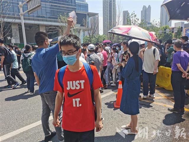 6月8日上午进行的就是首选科目考试,考试时长75分钟,从9点到10点15分。10时25分许,在武汉二中考场,记者看到一名考生奔向同学,急于探讨物理科目考试答案。“哎呀,那道选择题肯定选B!”“别说了,我大题有两道没答完,下午再搞,下午再搞!”同学摆摆手,直言发挥不太好,中午要好好休息,调整心情,准备下午的英语考试。