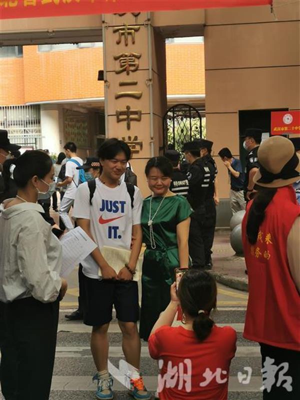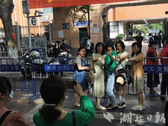 首选科目考试时长75分钟,有家长担心孩子答卷时间不够,也有家长信心满满,身着寓意“一路畅通”的绿色服装,将孩子送进考场后,一起合影留念。