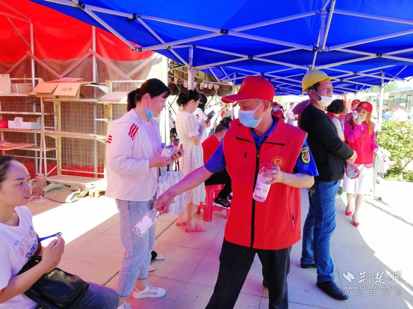 为考生及家长提供饮用水。通讯员 供图