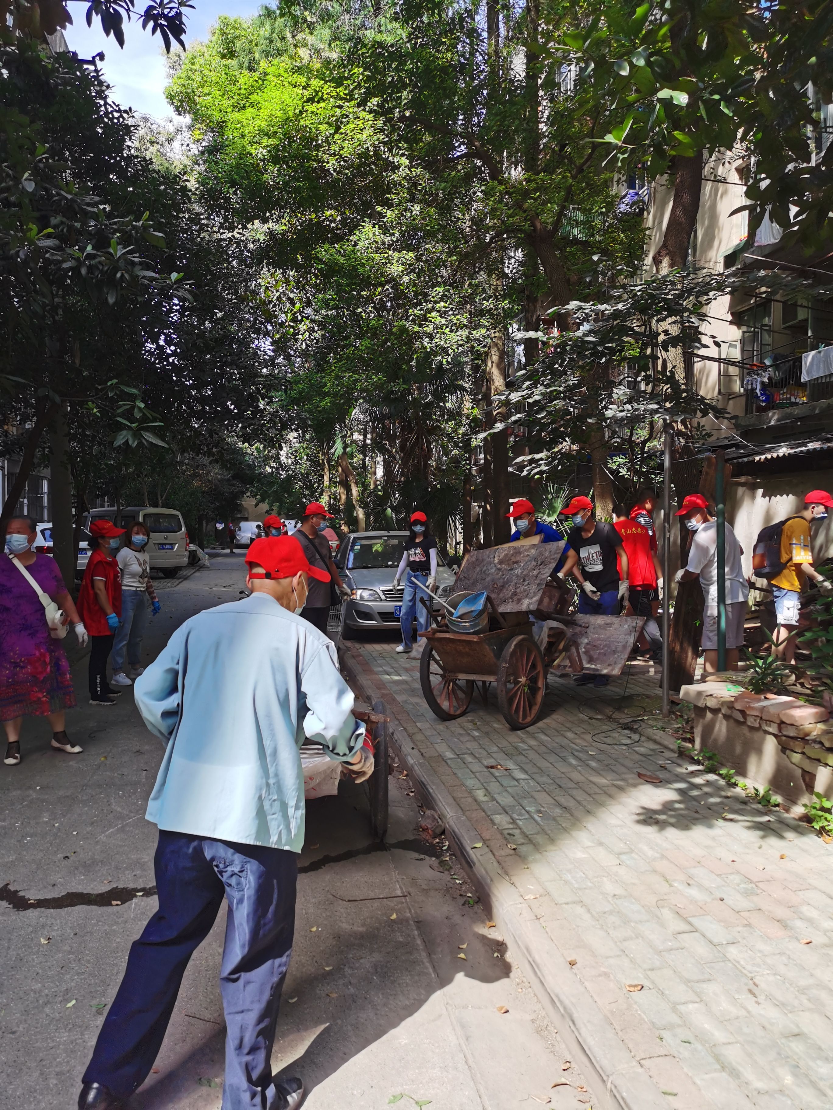 谢累保正在参与社区劳动,他的蓝色衬衣背后已汗湿大片。 社区供图
