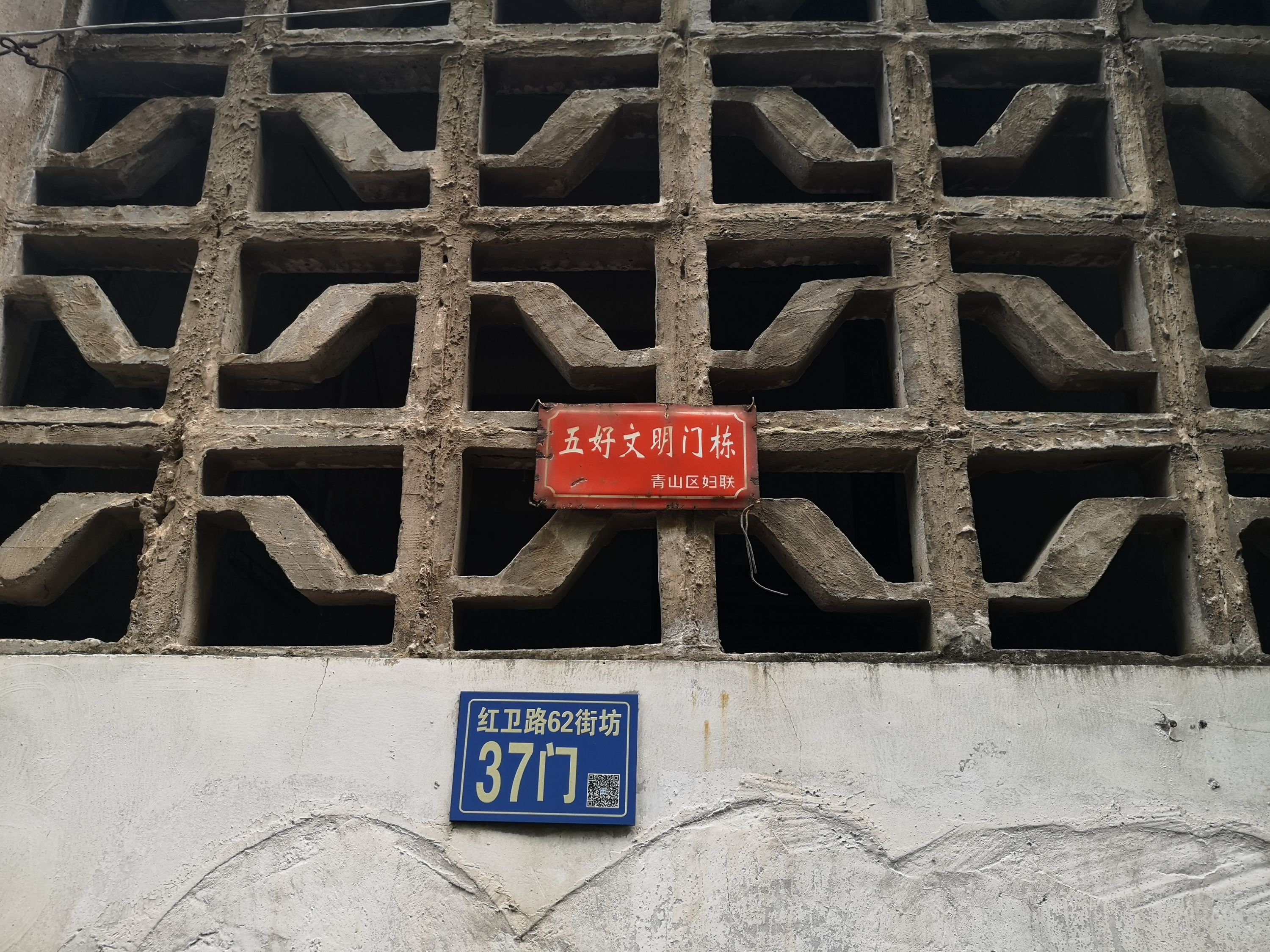 37门门口悬挂着一块老的“五好文明门栋”牌。 长江日报记者覃柳玮 摄