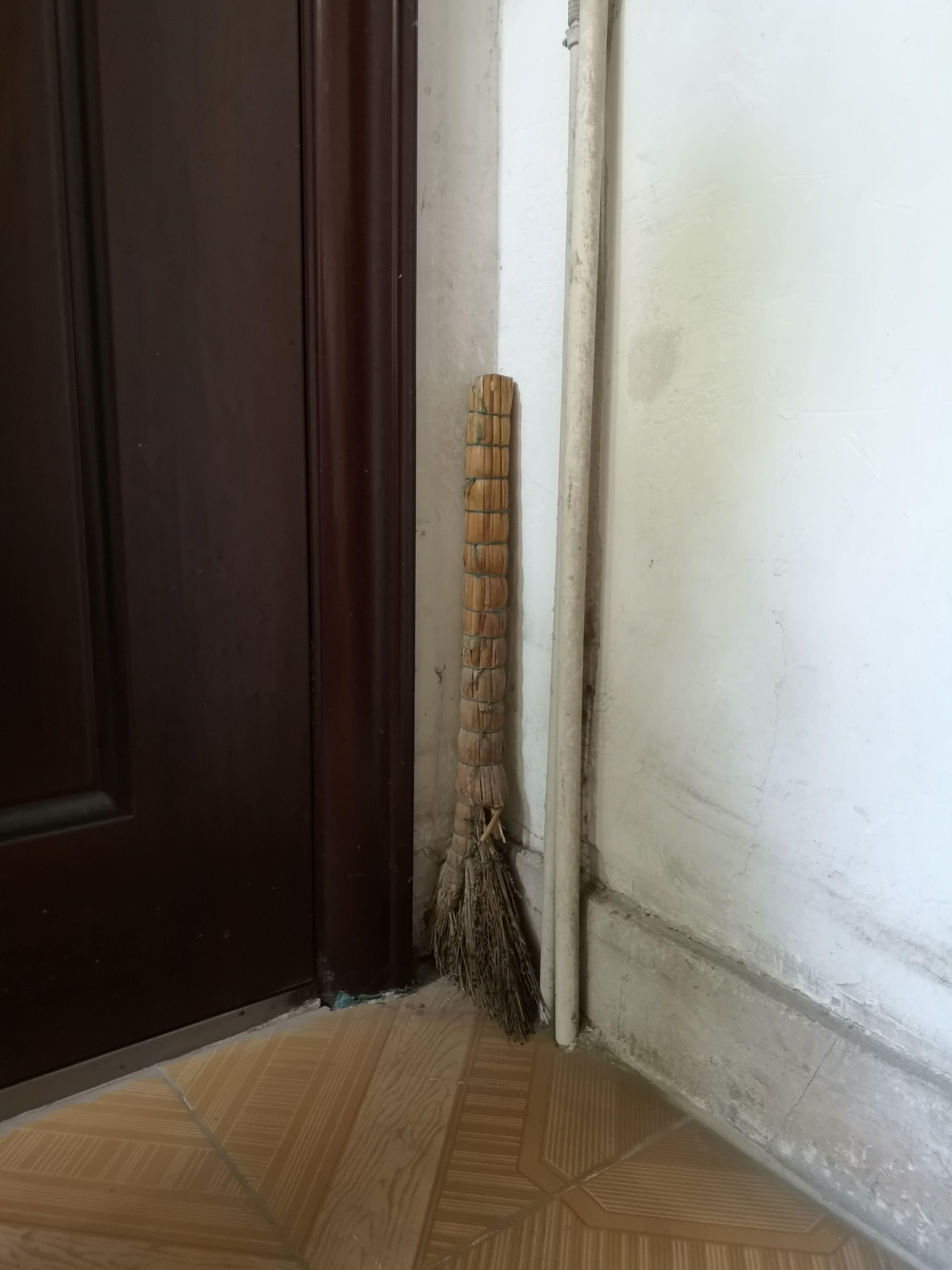 37门楼道里几乎每一层都放着至少一把扫把。 长江日报记者覃柳玮 摄