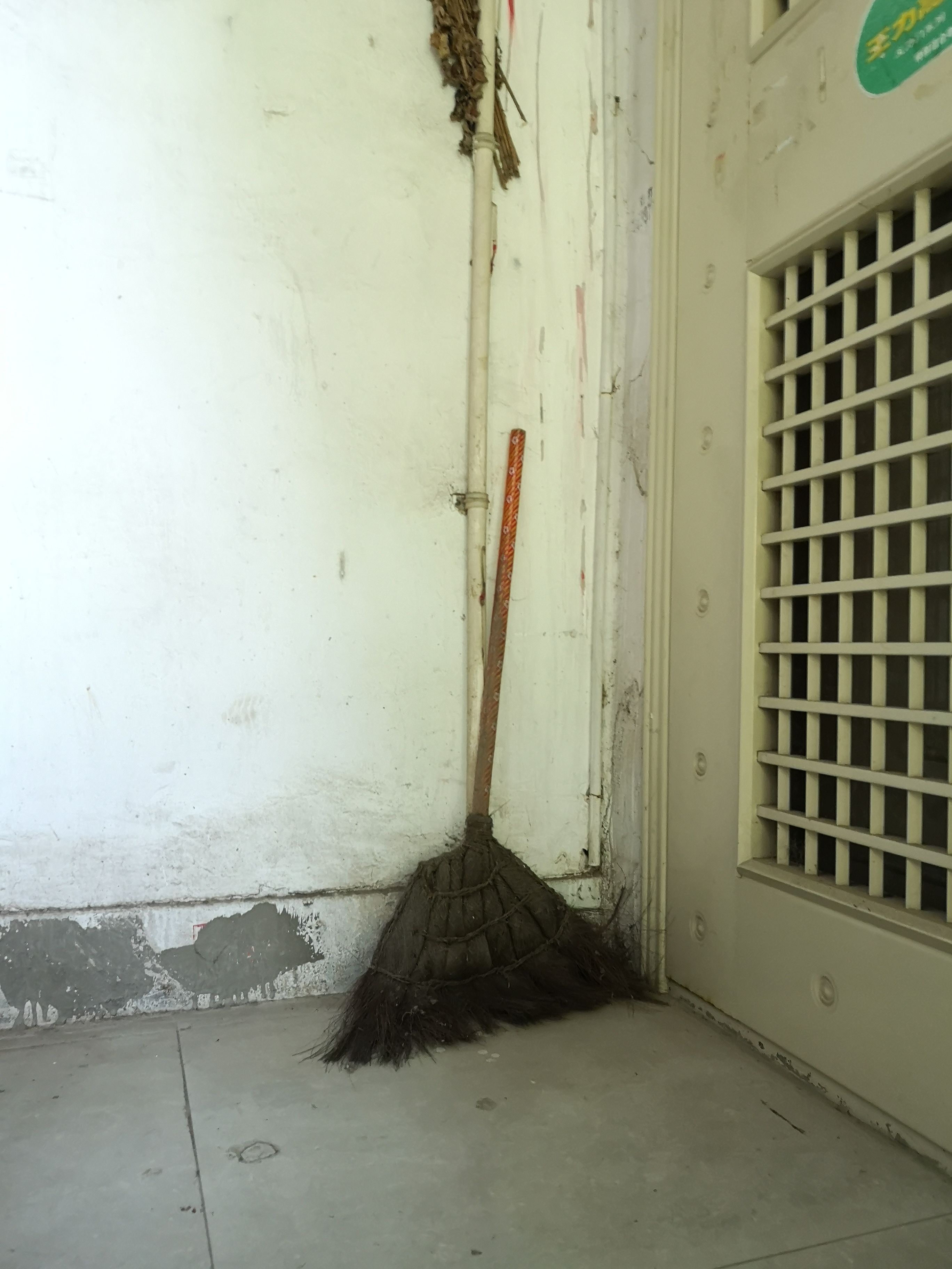 走进37门,会看到一个有趣的情景,楼道里几乎每一层都放着至少一把扫帚,或立在门口,或放在墙角,或挂在水管上。6楼居民乐义兵介绍,这是各家用来清扫自家所在楼层的扫帚。