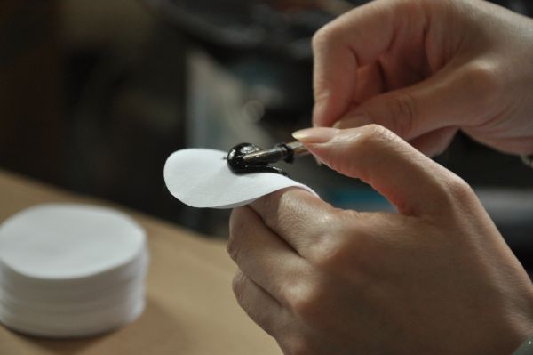 手工摊涂冬病夏治黑膏药。医院供图