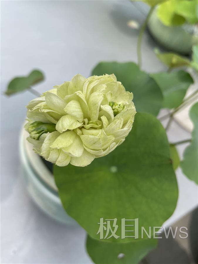“重台并蒂莲和双心莲,难得一见,今年首次参展。”来到荷花精品展示区的琴桐馆,杨雄指着一盆绿中泛黄的并蒂莲说,并蒂莲往年也有展出,但今年展出的是重台并蒂莲,名叫“濠江情怀”,是去年培育的一个新品种,本来新品种是需要过几年待性状稳定后再展出,但竟然是少见的重台并蒂莲,就赶紧拿出来与大家分享这份美好。
