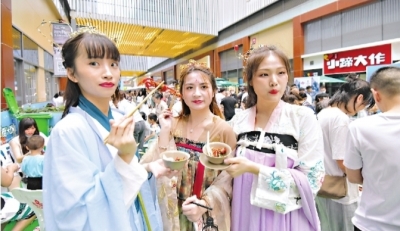 12日,端午节小长假第一天,云尚武汉国际时尚中心热闹非凡,畅饮啤酒、免费吃小龙虾、汉服秀、民俗好物市集……丰富多样、趣味十足的活动,吸引不少游客前来购物打卡。