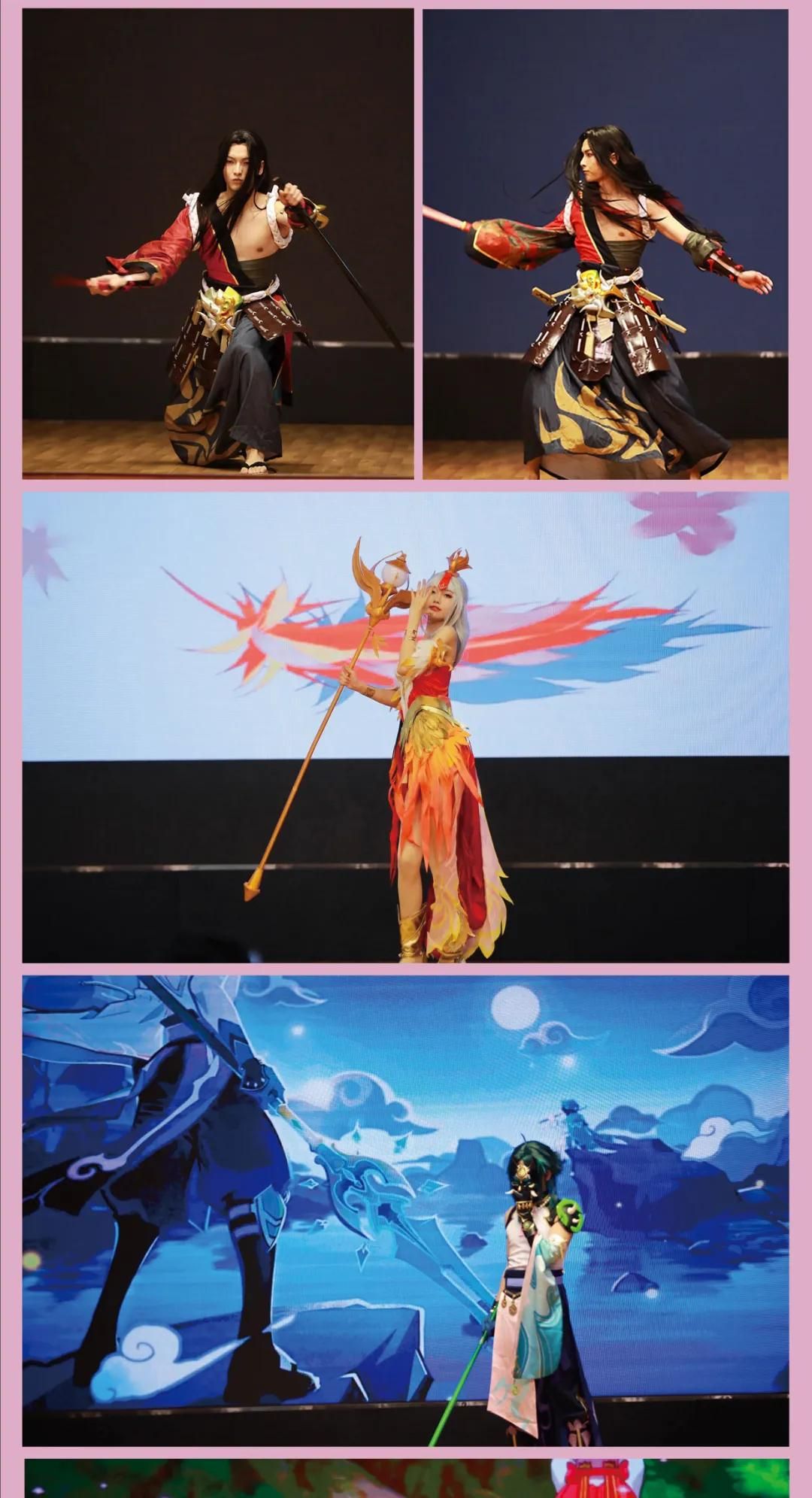 在所有到场嘉宾、场外观众和应援团热情的尖叫声和欢呼声中,四个赛道、八个组别、32名(组)选手的精彩角逐轮番上演,长达四个小时的比赛火力全开,效果拉满,印有参赛选手头像的应援手幅和扇子在人群中格外显眼,每位选手都在舞台上闪闪发光,尽力释放自己对国漫的热爱。