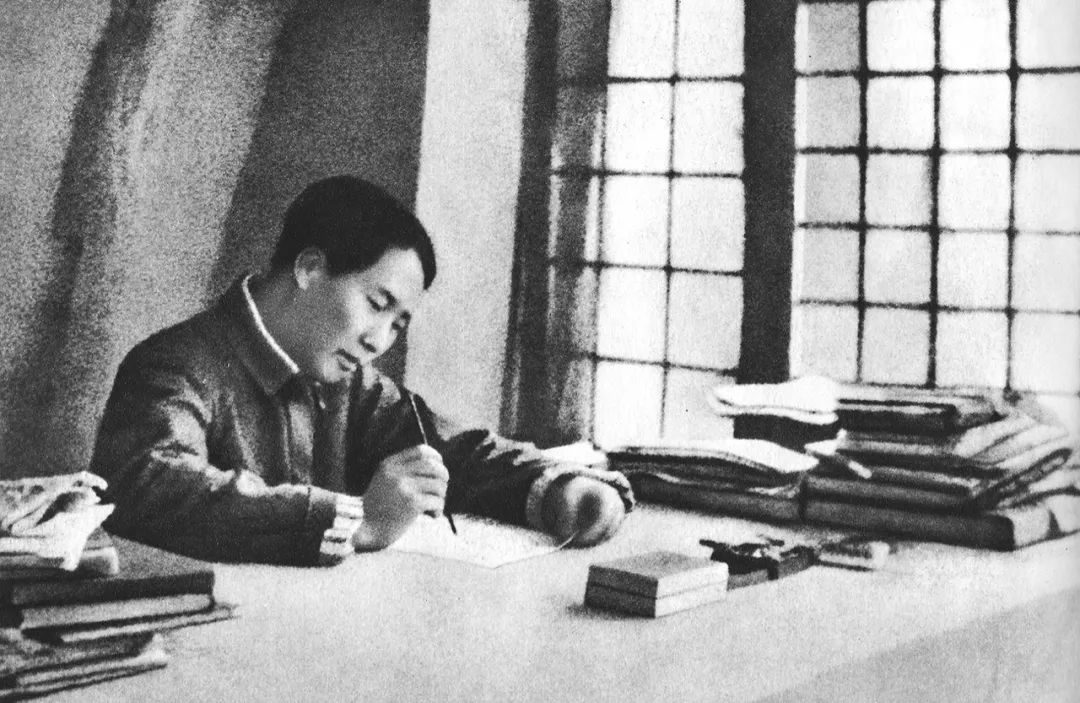 1938年,毛主席在延安窑洞中写光辉著作《论持久战》。