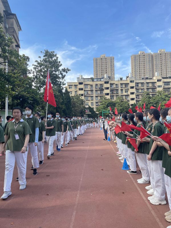 九年级学生在全校师生的摇旗呐喊中,自信地奔向未来。学校供图