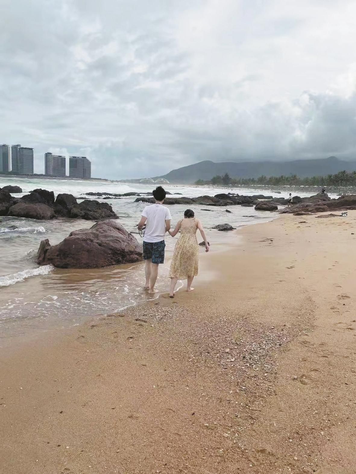 事发前,胡煜坤和女友在日月湾海滩牵手游玩