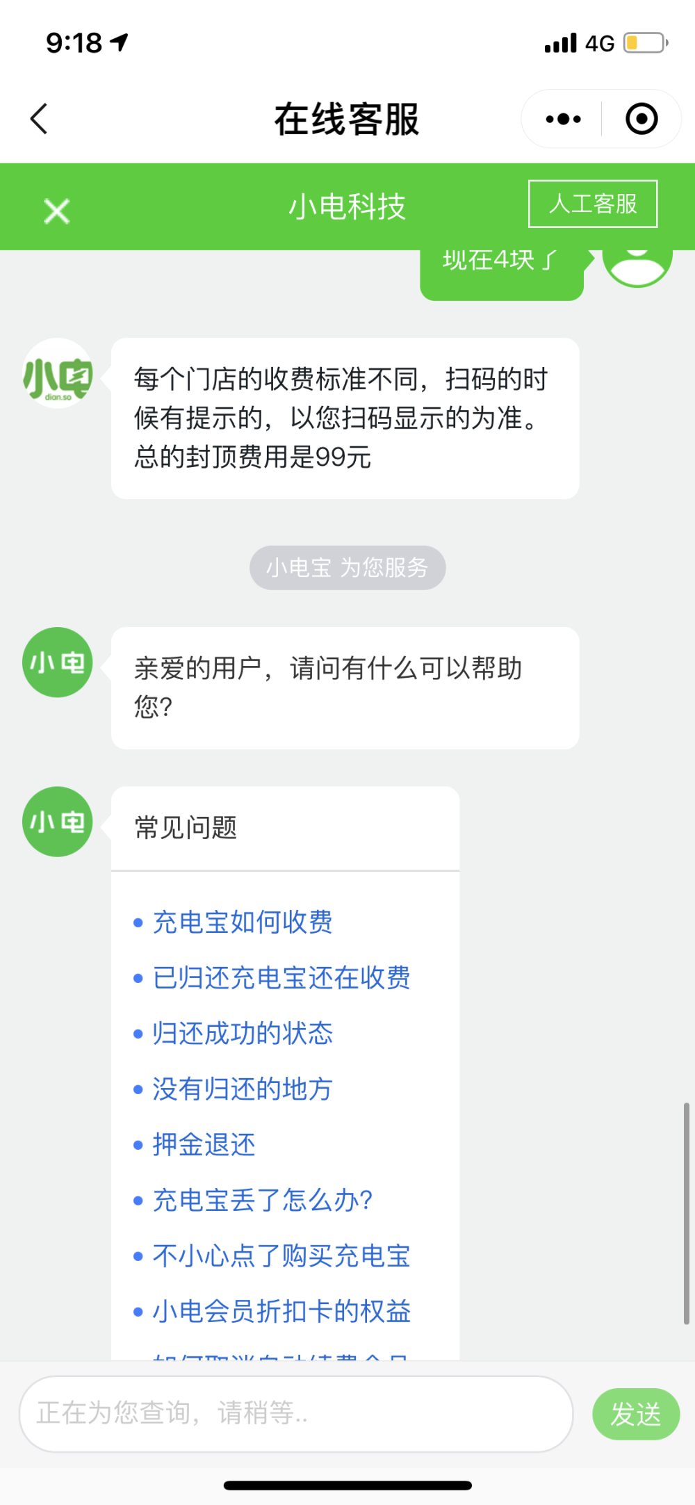 小电充电宝客服回应涨价。小电充电宝小程序截图