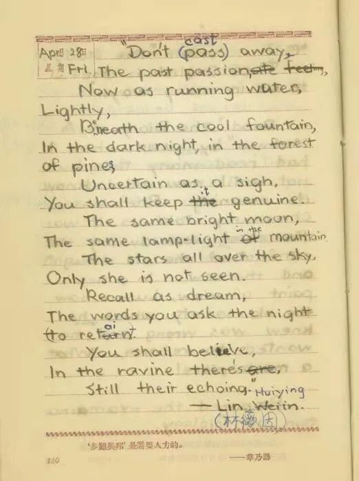 而当年翻译的英文手稿,字体竟非常稚嫩可爱。