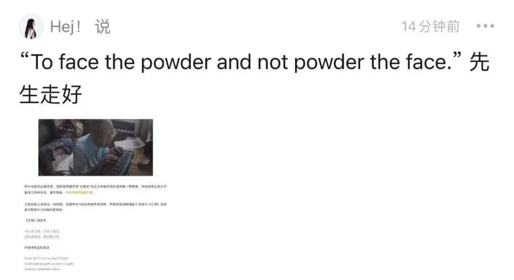 在社交媒体上,网友们纷纷用先生译文怀念他: