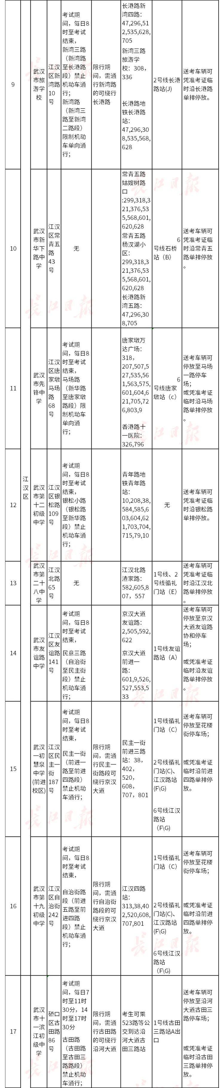 武汉交警发布出行提示中考第二天送考车流与周一早高峰叠加考点周边交通压力较大建议考生和家长提前规划好出行方式和线路