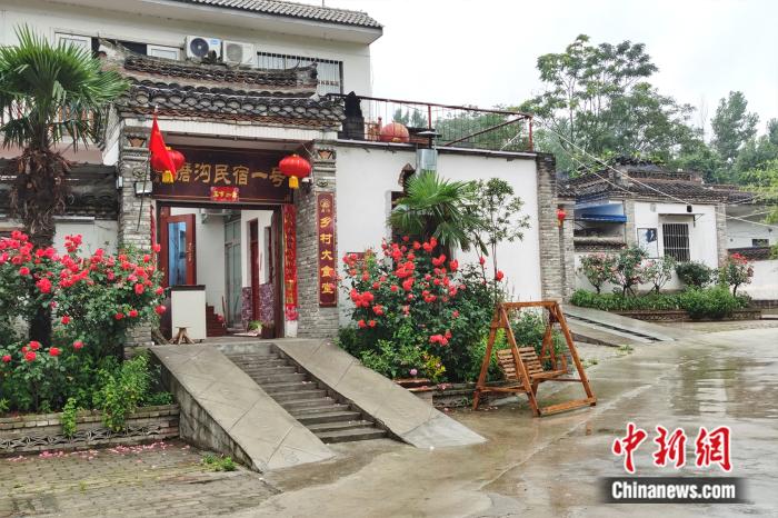 走在磨沟村的乡间道路上,路边的民宿小院里飘出饭菜香,青砖白墙与盛放的月季相映衬,一派宁静和谐的美丽乡村景象呈现在眼前。作为历史上红二十五军长征转战地,磨沟村不仅有绿水青山,还有红色革命基因。