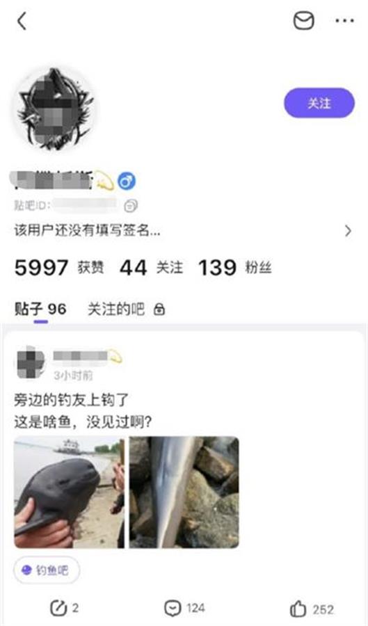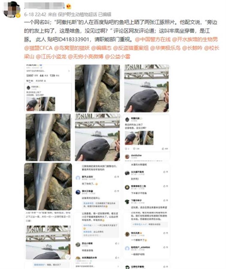 6月18日晚,一博主发布微博称,其在百度贴吧“钓鱼吧”中,发现一网友晒出了两张江豚的照片,该网友还配文称“旁边的钓友上钩了,这是啥鱼,没见过啊?”