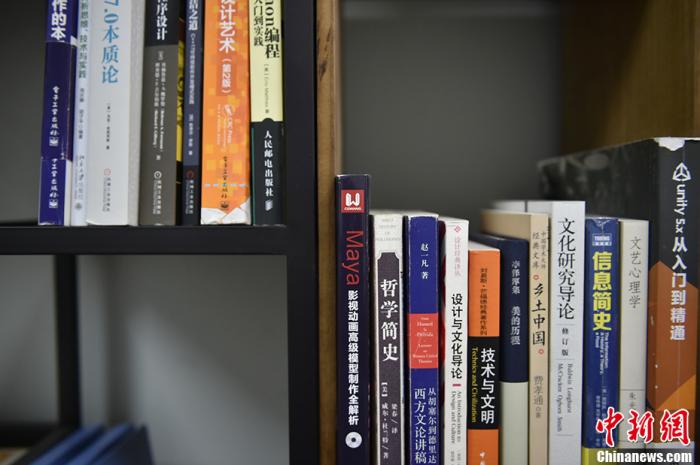 “电竞专业”同学书架上的书籍。中新网记者 李骏 摄