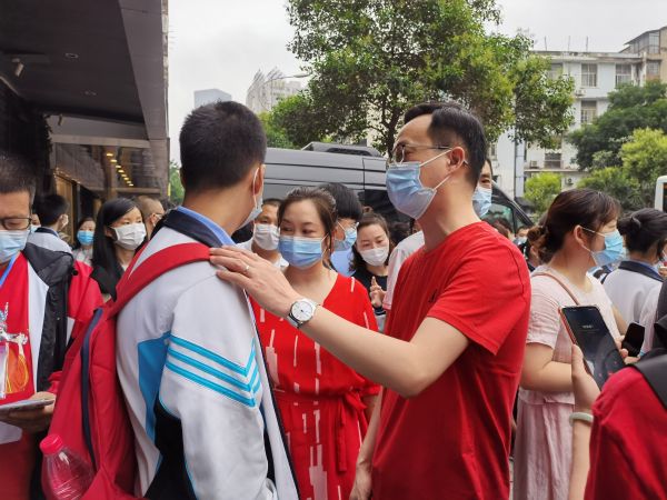 长江日报6月20日讯 6月20日上午7:40,武汉市第二十八中学考点门前,一位父亲轻拍儿子肩膀,细细叮嘱。
