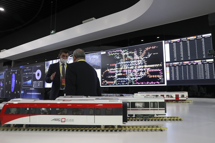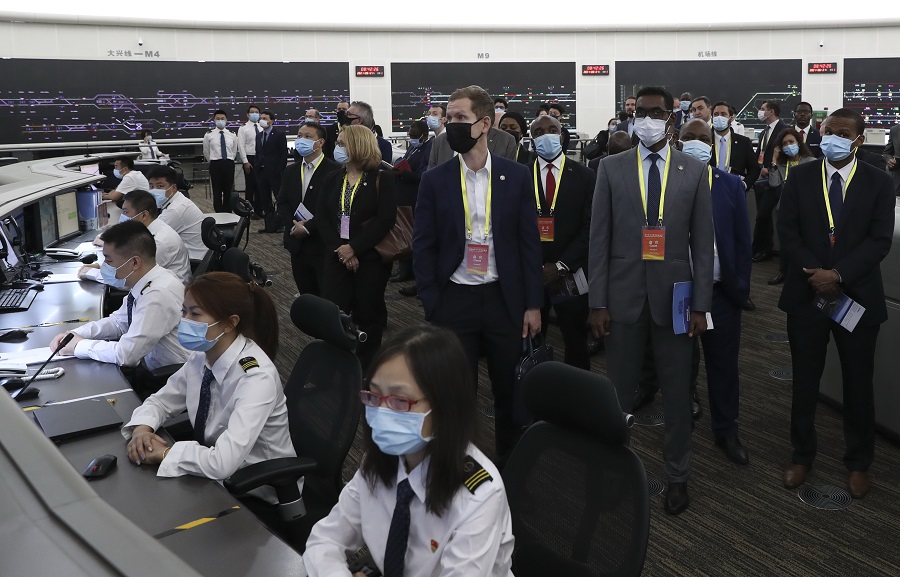 6月21日,驻华使节参观北京轨道交通指挥中心展厅。 中国日报记者 冯永斌 摄