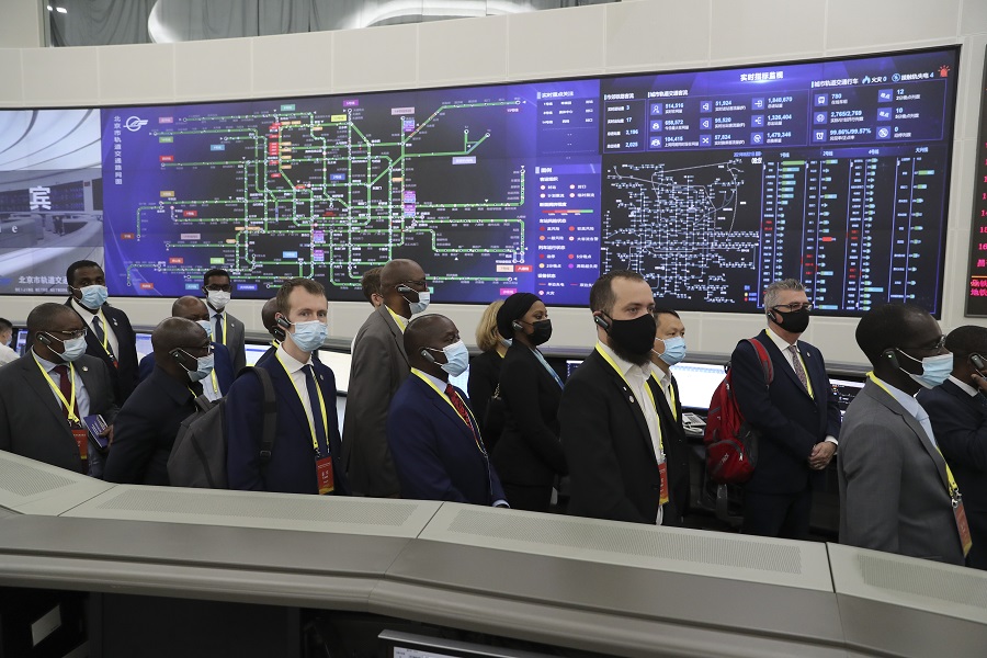 6月21日,驻华使节参观北京轨道交通指挥中心指挥大厅。 中国日报记者 冯永斌 摄