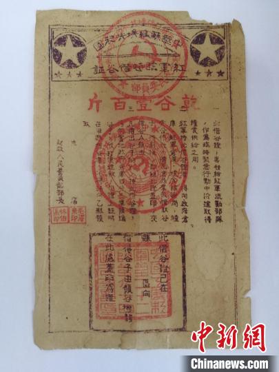中新网福建清流6月21日电 (吴火招 王宜峻 张华)经历了80余年,印在一张“红军临时借谷证”票据上的印章,依旧红得耀眼。