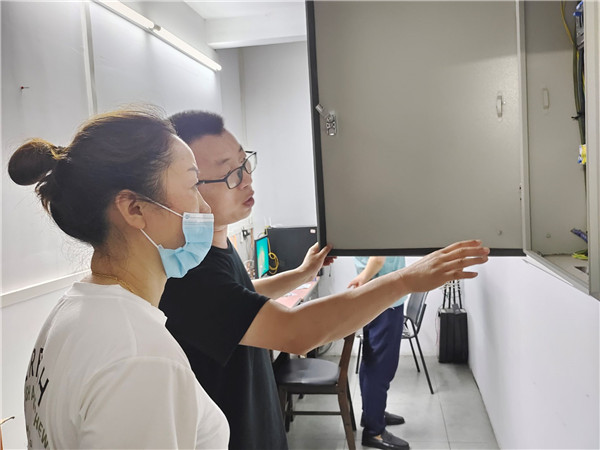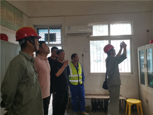 6月17日,在金湖街道鲤泥湖矿业有限责任公司,市供电公司的工作人员在巡检该企业配电室。