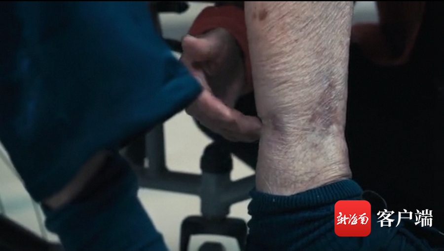 林维超老人的腿上,那些暗黑色的伤疤,令人触目惊心。