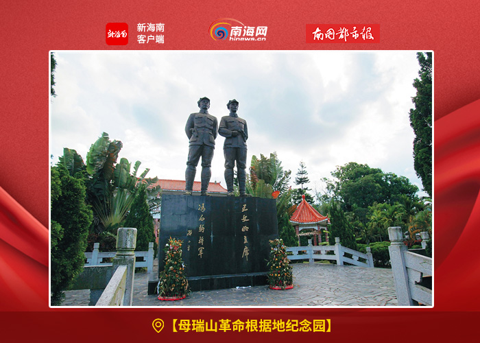 母瑞山革命根据地纪念园位于定安县境内国营中瑞农场原琼崖红军操场司令台遗址,占地20亩,总建筑面积5394.6平方米。该园主要由王文明主席和冯白驹将军铜像、陈列馆和题词亭组成。
