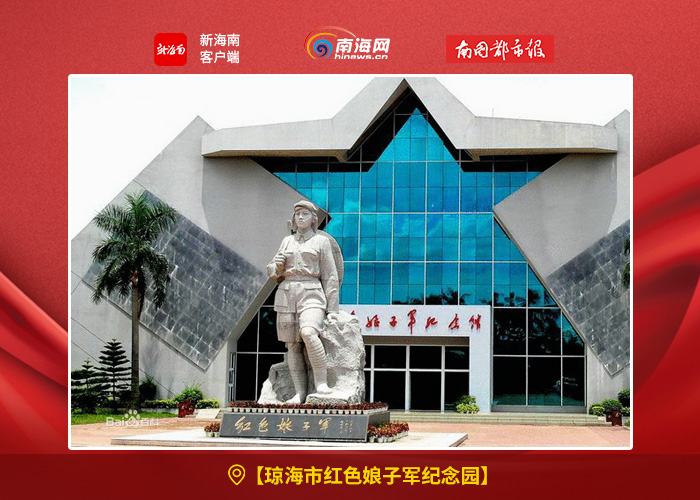 红色娘子军纪念园位于琼海市嘉积镇,于1998年开始兴建,是为纪念1931年5月1日诞生的“中国工农红军第二独立师女子军特务连”而建造的红色文化旅游区。2000年5月1日落成开园。园内有一尊高10米、宽4.5米的红色娘子军雕像,雕像头戴八角军帽、背斗笠、肩扛钢枪、赤着脚,两眼炯炯向前,形象逼真。