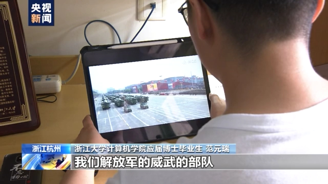 浙江大学计算机学院应届博士毕业生 范元瑞:作为一个出国在外的留学生,看到当时的(阅兵式上)我们解放军威武的部队,以及东风导弹的出现,也(想)要为了祖国的国家安全去献出自己的热血。