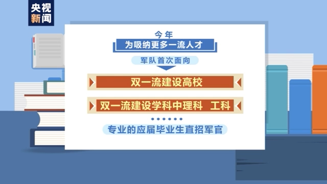 同时,今年首次从“双一流”建设高校和双一流建设学科的理学、工学应届毕业生中直招军官。
