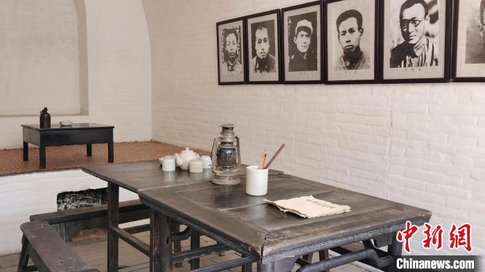 透过盛夏的烈日,踏过历史的青砖,走进这个不足12平方米的窑洞内,映入眼帘的是两张八仙桌拼起来的会议桌,桌旁围着六条长凳,整体显得朴素、庄重。而在墙跟前一面土炕几乎占去了三分之一的空间。现场一件件旧物件,一张张旧照片,印证着曾经在这里发生过的一切,让人们触摸历史、感悟历史。
