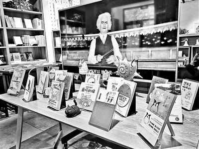 书店正中摆放着一个巨大的电视屏幕,正在循环播放着卓别林的喜剧电影《城市之光》经典片段,屏幕前面摆放着各类被重点推荐的新书。“这本《笑的科学》是比较有学术性的书;这本《我思故我笑》,是讲哲学和幽默的书;这本《世界上最坏的猫》,我们还为它搭配了一个黑猫玩具,这样看起来比较吸引人。”书店主理人岂航向北青报记者介绍道,